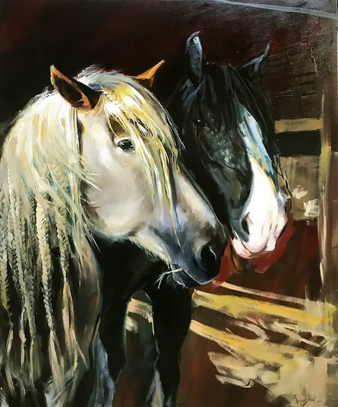 Laat je raken door dierenschilderijen die de unieke persoonlijkheid en emotie van elk dier tot leven brengen. Van majestueuze paarden tot lieve huisdieren — ieder schilderij vertelt een eigen verhaal, gevangen in licht, kleur en gevoel.
